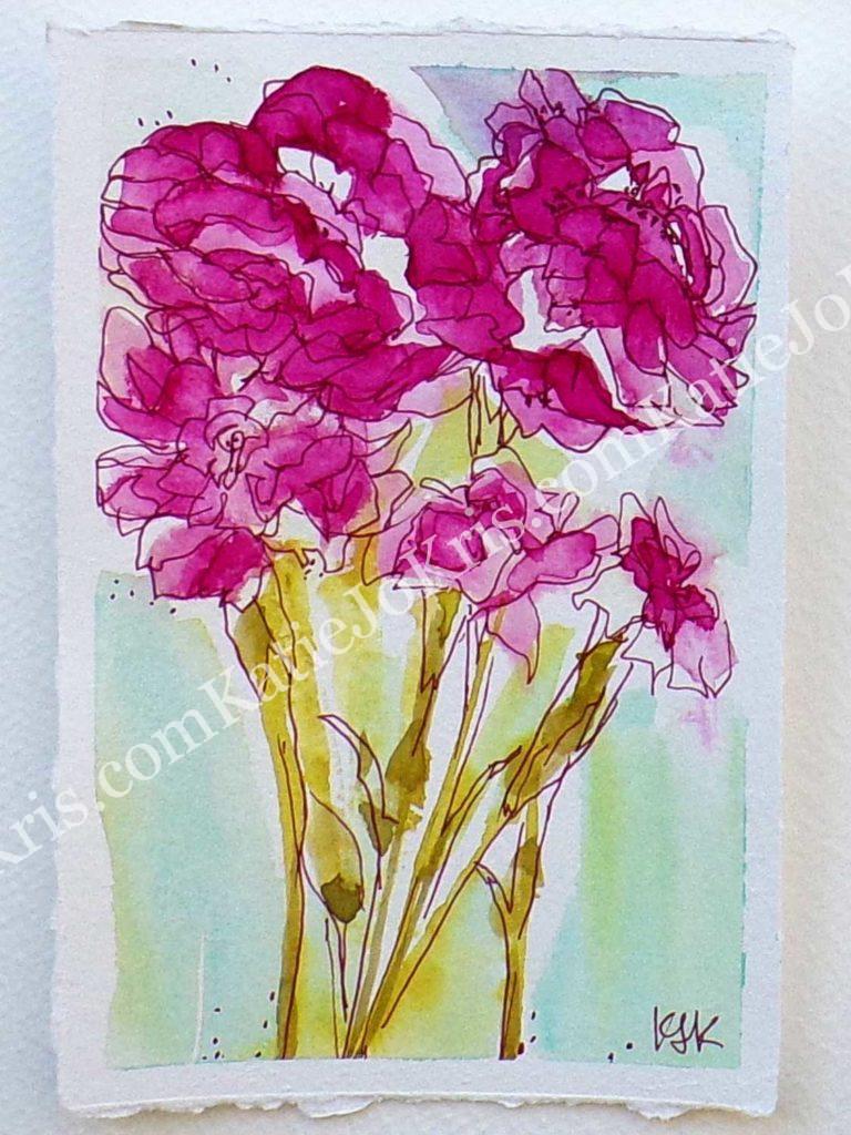 Pink mums. Small bouquet. Loose watercolor.